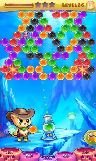 2. 发射泡泡:通过滑动和点击屏幕控制猫咪发射泡泡,尽量让相同颜色的泡泡聚集在一起以形成更大的泡泡进行消除。