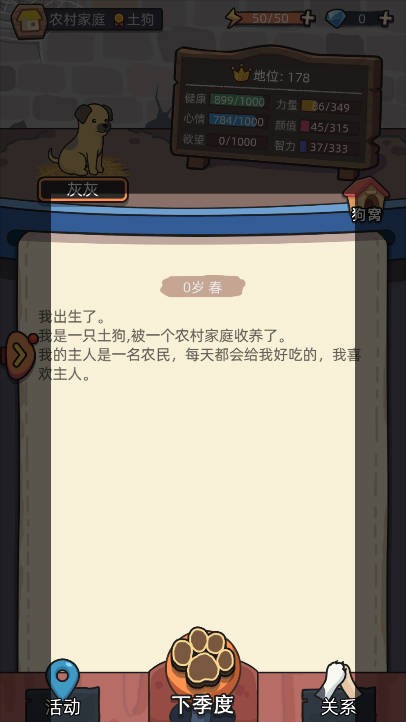1. 创建角色:玩家首先需要选择或创建一只独特的狗狗角色,包括品种、颜色、性格等。