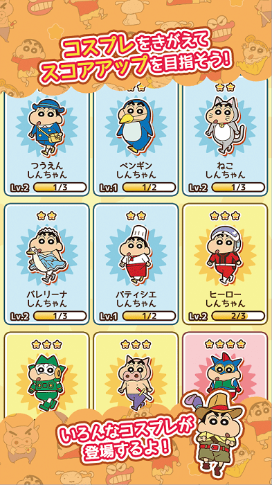 《蜡笔小新:呼风唤雨的春日部跑垒员》是一款以知名动画《蜡笔小新》为题材的跑酷冒险游戏。玩家将扮演主角野原新之助(即蜡笔小新),在充满春日部小镇的各种场景中,通过灵活的操作躲避障碍,收集金币和道具,完成一系列趣味横生的任务和挑战。