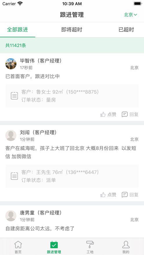 4. 实时关注施工进度,通过应用内的施工日志功能与施工队沟通协调。