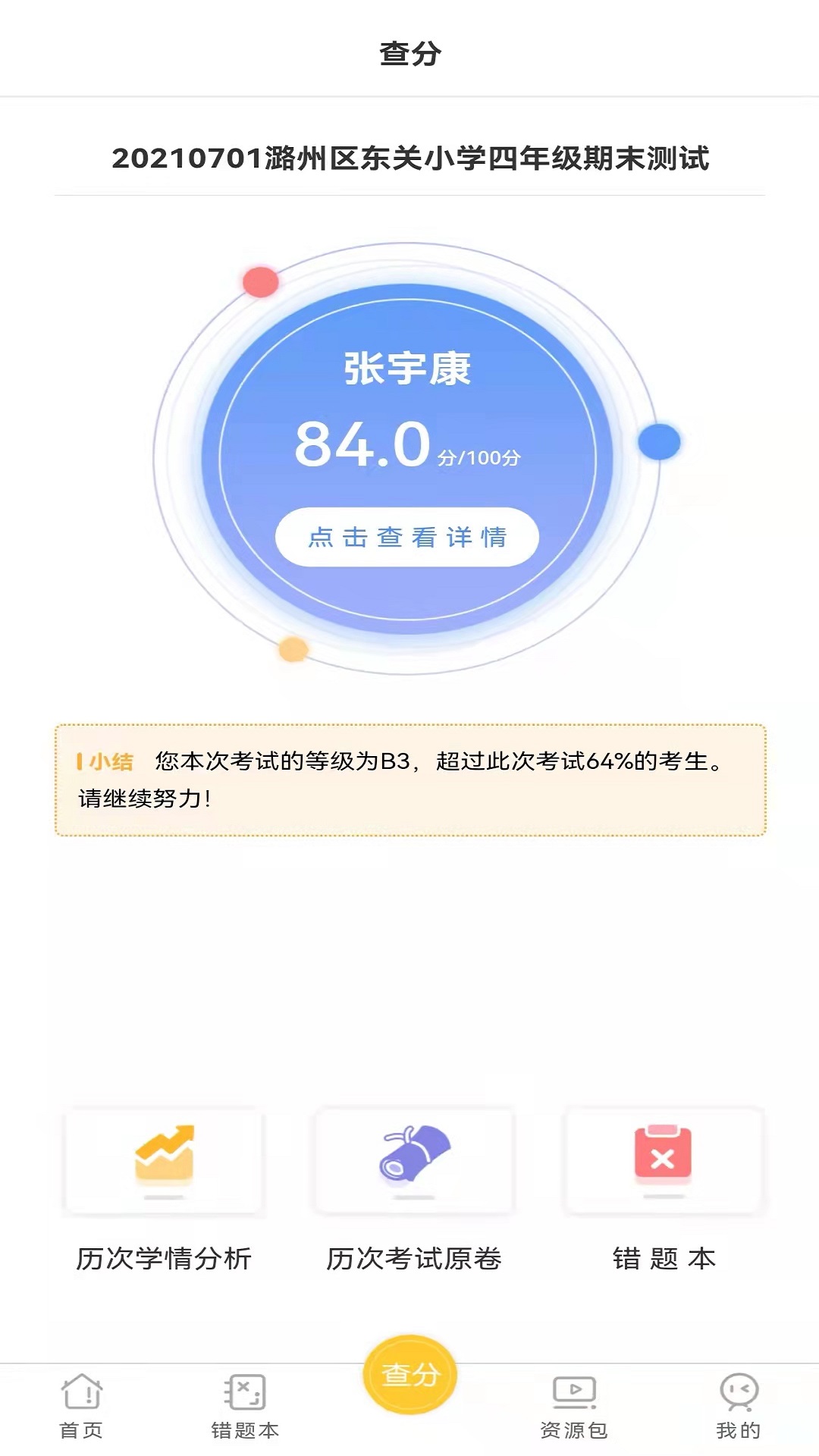2. 学习动态:查看孩子的学习成绩、课堂表现、作业完成情况及参与的课外活动等信息。