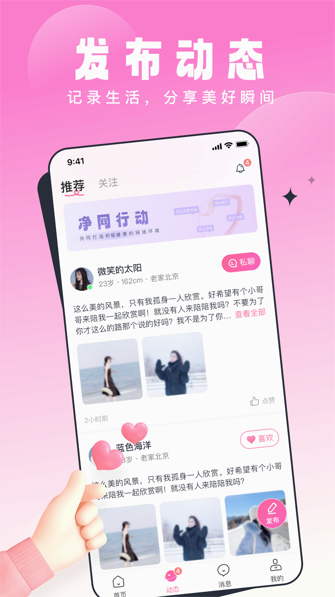 1. 用户动态:展示用户的最新发布和分享内容。