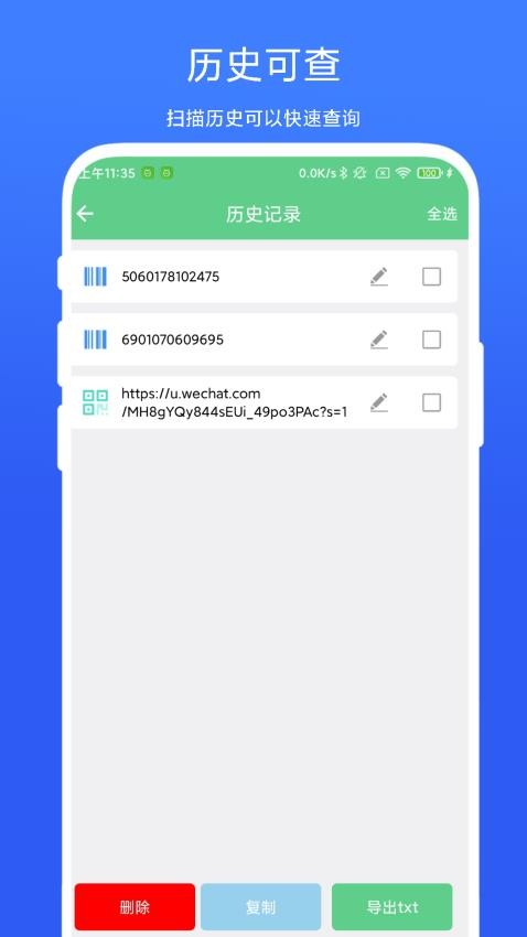 - 提供历史记录功能,方便用户随时查看和管理扫描过的信息。