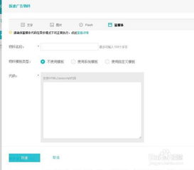 在左侧投放管理处选择“物料管理”>>新建广告物料。选择“富媒体”类型,填写物料名称,将广告联盟处获取的代码填入到代码框,点击完成。